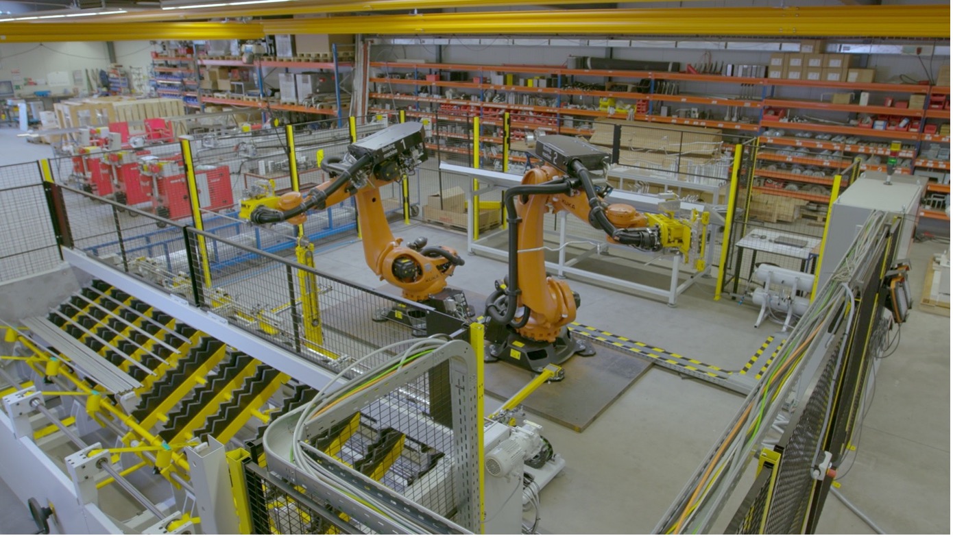 配備兩個(gè)機(jī)器人的機(jī)器人彎管單元,兩個(gè)機(jī)器人可以同步工作。諸如夾緊或支撐設(shè)備之類的附加裝置也可以同步運(yùn)行。機(jī)器人可以通過代碼識(shí)別組件,生成彎曲程序,并且還可以在不同的半徑和直徑之間進(jìn)行選擇。